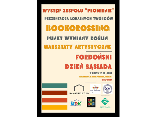 Fordoński Dzień Sąsiada – 11.10 w Hangarze Kultury! Występy, warsztaty, wymiana roślin i książek, atrakcje dla dzieci.