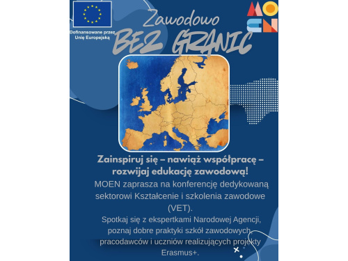 Serdecznie zapraszamy na konferencję Erasmus+ dla sektora Kształcenie i szkolenia zawodowe w MOEN