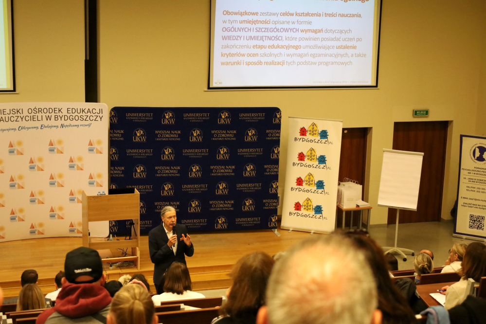 17 października 2025 r., w auli Wydziału Nauk o Zdrowiu i Kulturze Fizycznej Uniwersytetu Kazimierza Wielkiego w Bydgoszczy, odbyła się konferencja dla nauczycieli wychowania fizycznego pod hasłem „Motywacja, ocena, równość szans – Nowa podstawa programowa wychowania fizycznego”. W konferencji wzięło udział blisko 100 nauczycieli wychowania fizycznego. Organizatorem wydarzenia był Miejski Ośrodek Edukacji Nauczycieli w Bydgoszczy oraz Wydział Nauk o Zdrowiu i Kulturze Fizycznej UKW.