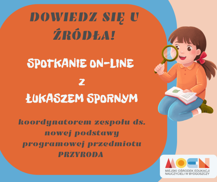 Serdecznie zapraszamy 27 października (PONIEDZIAŁEK) o godzinie 18:00 na spotkanie on-line z Łukaszem Spornym - koordynatorem zespołu opracowującego nową podstawę programową z przedmiotu przyrody.