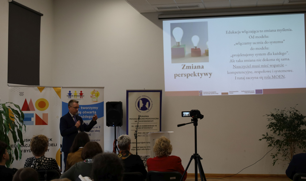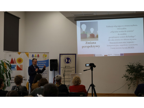 Najważniejszym i najbardziej wymagającym przedsięwzięciem na początku działalności Specjalistycznego Centrum Wspierającego Edukację Włączającą w Bydgoszczy, było przeprowadzenie otwartej, merytorycznej konferencji przybliżającej proces wdrażania edukacji włączającej do polskich szkół i przedszkoli. Odbyła się 21 lutego br, dzięki partnerstwu z Miejskim Ośrodkiem Edukacji Nauczycieli oraz Poradnią Psychologiczną nr 1 w Bydgoszczy. Na zaproszenie do udziału w niej odpowiedziało ponad 100 uczestników: dyrektorów szkół i instytucji oświatowych, nauczycieli, studentów, a także rodziców zaangażowanych w proces edukacji swoich dzieci. W konferencji brali również udział przedstawiciele Urzędu Miasta Bydgoszczy, Kuj-Pom Kuratorium Oświaty, Kuj-Pom Oddziału PFRON oraz MOEN, PPP 1 i Uniwersytetu Kazimierza Wielkiego w Bydgoszczy. To ważne społecznie wydarzenie otrzymało patronat Prezydenta Miasta Bydgoszczy.