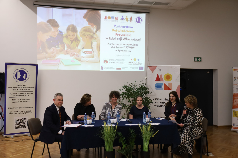 Celem konferencji oprócz inauguracji działań SCWEW w Bydgoszczy, przybliżenia jego struktury oraz zadań do realizacji, było także zaprezentowanie najważniejszych filarów wdrażania edukacji włączającej oraz wskazanie kluczowych warunków, które są niezbędne do trwałości i wysokiej jakości edukacji. Na uwagę zwraca też fakt zorganizowania jednej z części konferencji jako oryginalnej formy debaty na temat wyzwań i szans edukacji włączającej z perspektywy rodziców, uczniów i studentów. W poruszającym i pełnym emocji panelu dyskusyjnym, moderowanym przez lidera SCWEW i pracownika naukowego UKW wzięli udział zaproszeni rodzice dzieci ze spektrum autyzmu i dzieci głuchych oraz studentka socjologii z dysfunkcją wzroku.