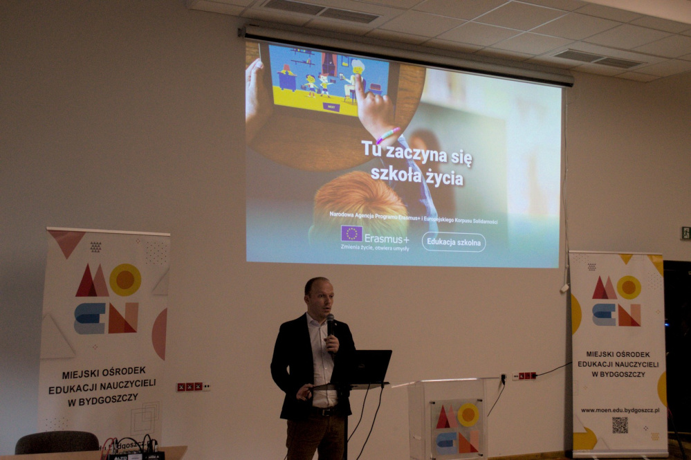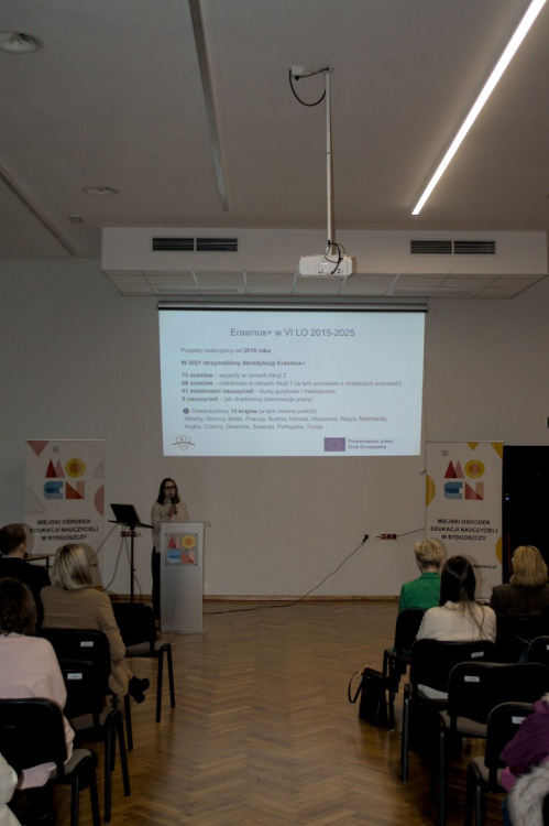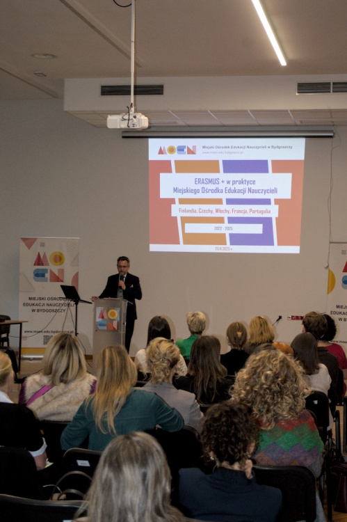 W dniu 26 listopada 2025 roku w siedzibie Miejskiego Ośrodka Edukacji Nauczycieli odbyło się spotkanie poświęcone upowszechnianiu dobrych praktyk w realizacji projektów Erasmus+ w sektorze Edukacja szkolna. Wydarzenie zgromadziło koordynatorów projektów, dyrektorów szkół, nauczycieli oraz przedstawicieli instytucji edukacyjnych, którzy dzielili się doświadczeniami w zakresie nowoczesnej edukacji, rozwoju kompetencji kluczowych i współpracy międzynarodowej.