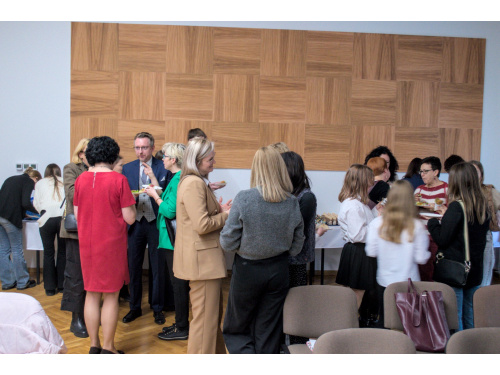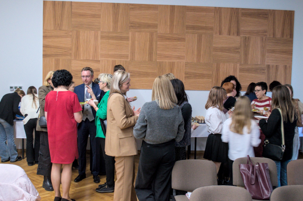 Ostatnim elementem wydarzenia był „Targ inspiracji” – otwarta przestrzeń spotkań i rozmów uczestników. Koordynatorzy projektów, nauczyciele oraz dyrektorzy szkół mogli wymieniać się doświadczeniami, zadawać pytania prezentującym oraz omawiać możliwości przyszłej współpracy. W atmosferze swobodnego dialogu nawiązywano nowe kontakty, rodziły się pomysły projektowe, a uczestnicy dzielili się refleksjami nad zastosowaniem prezentowanych rozwiązań w swoich placówkach.